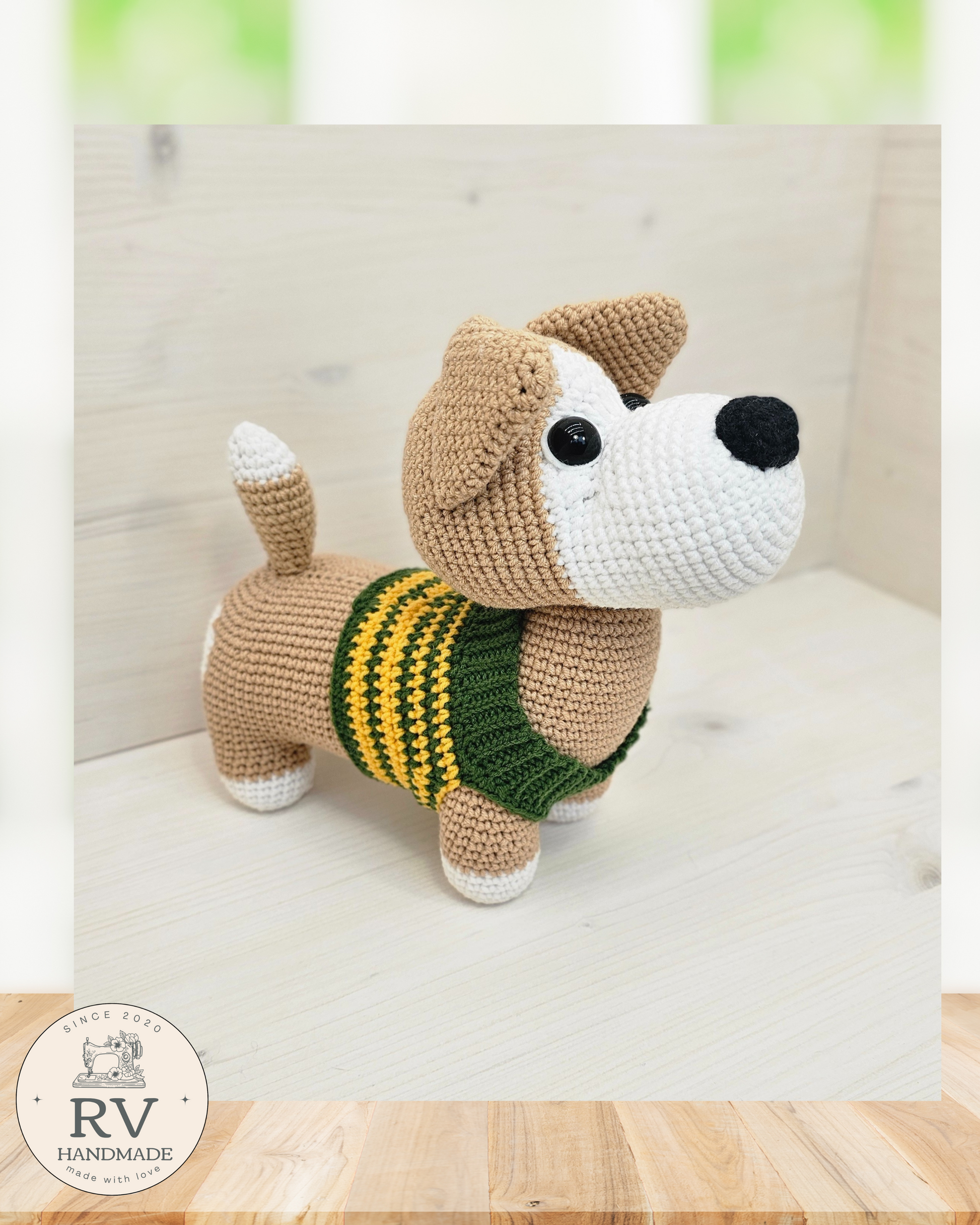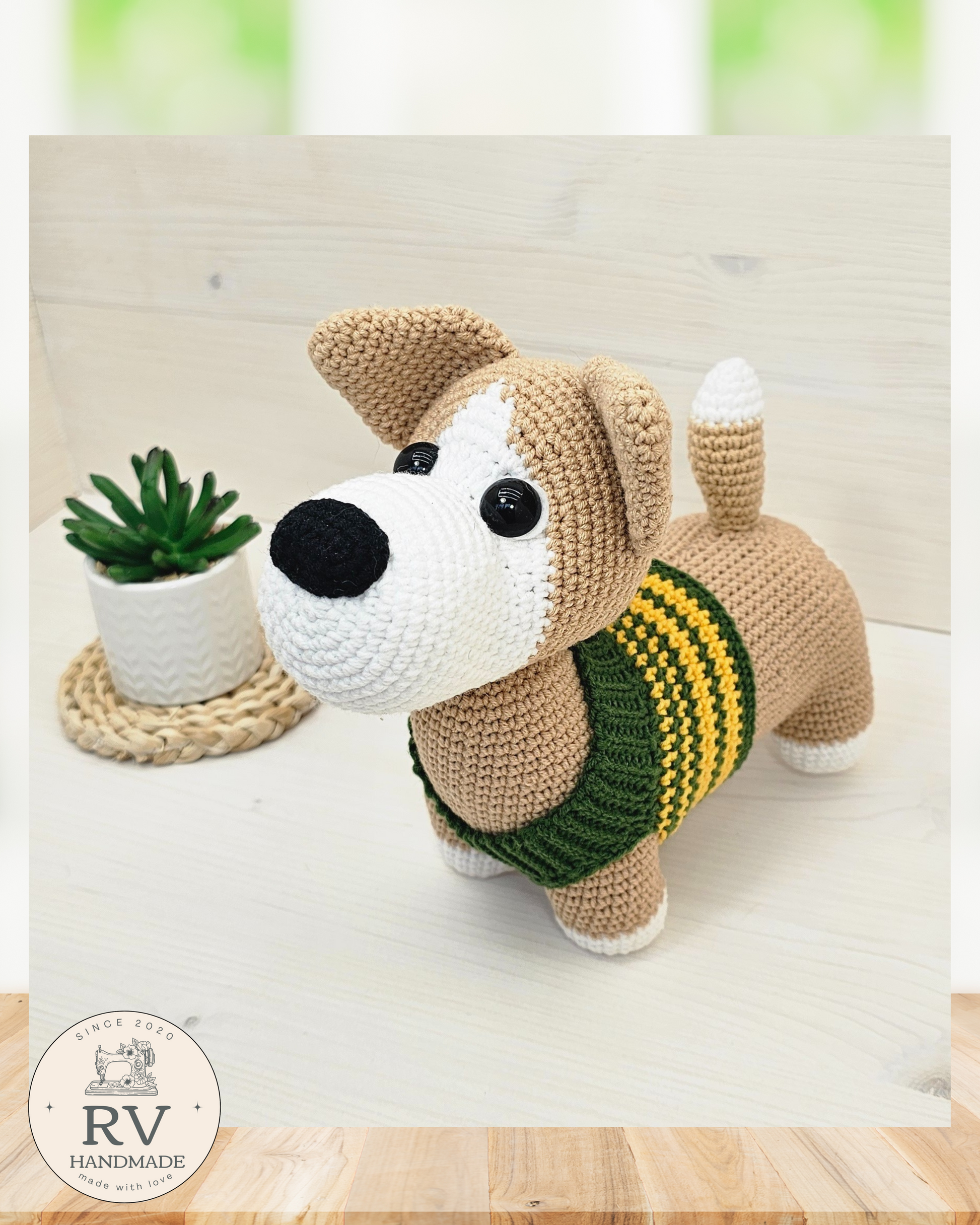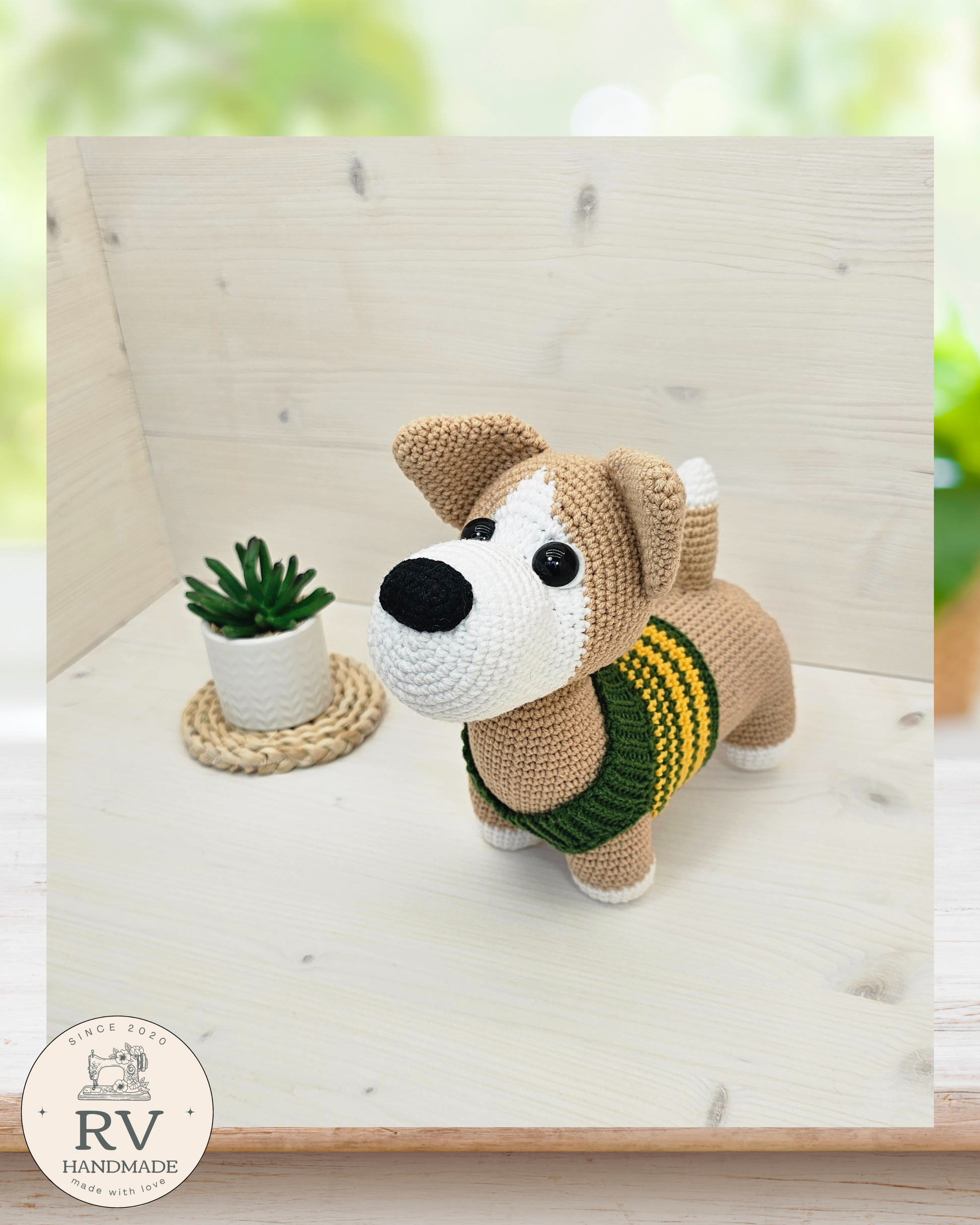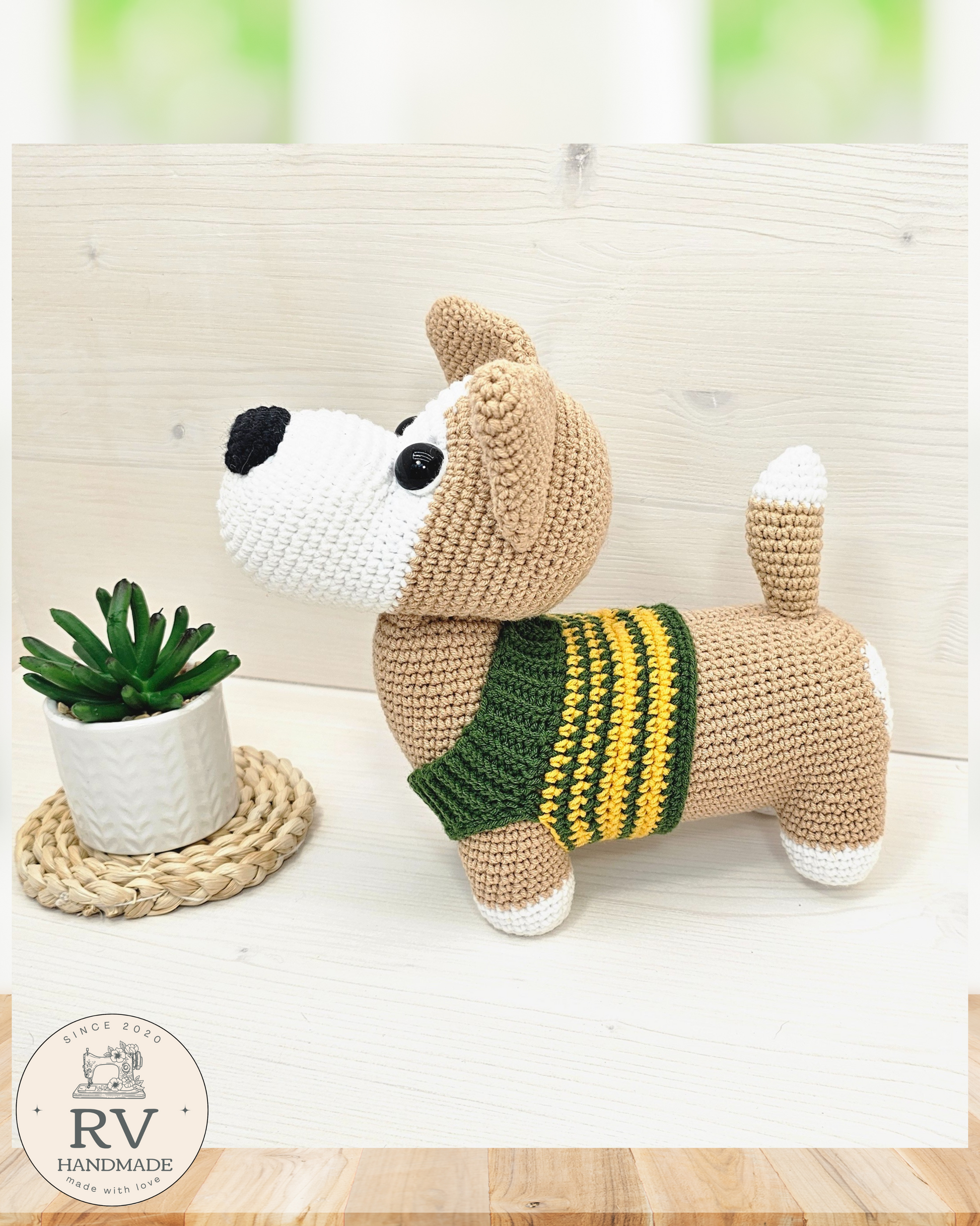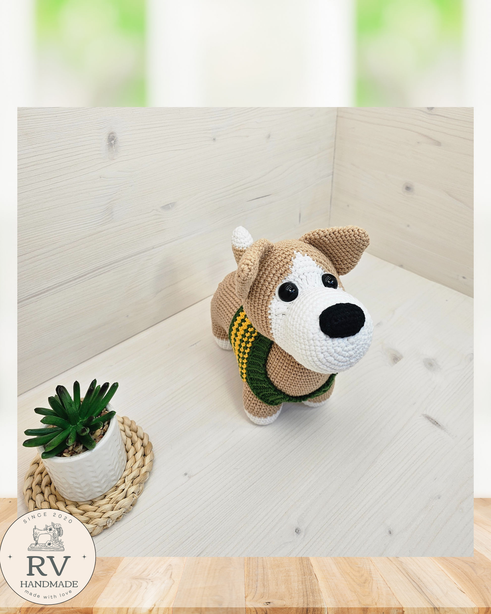 - Verpalai: Šuniukas nertas naudojant medvilnės ir polikrilo Yarn Art verpalus.