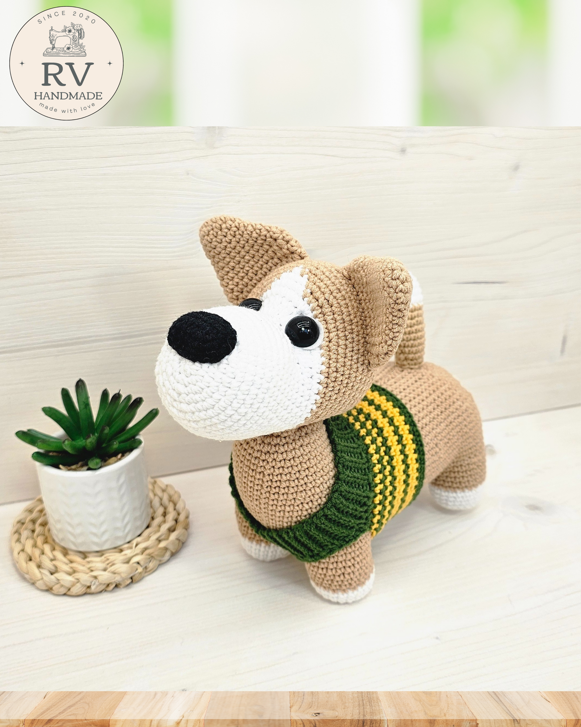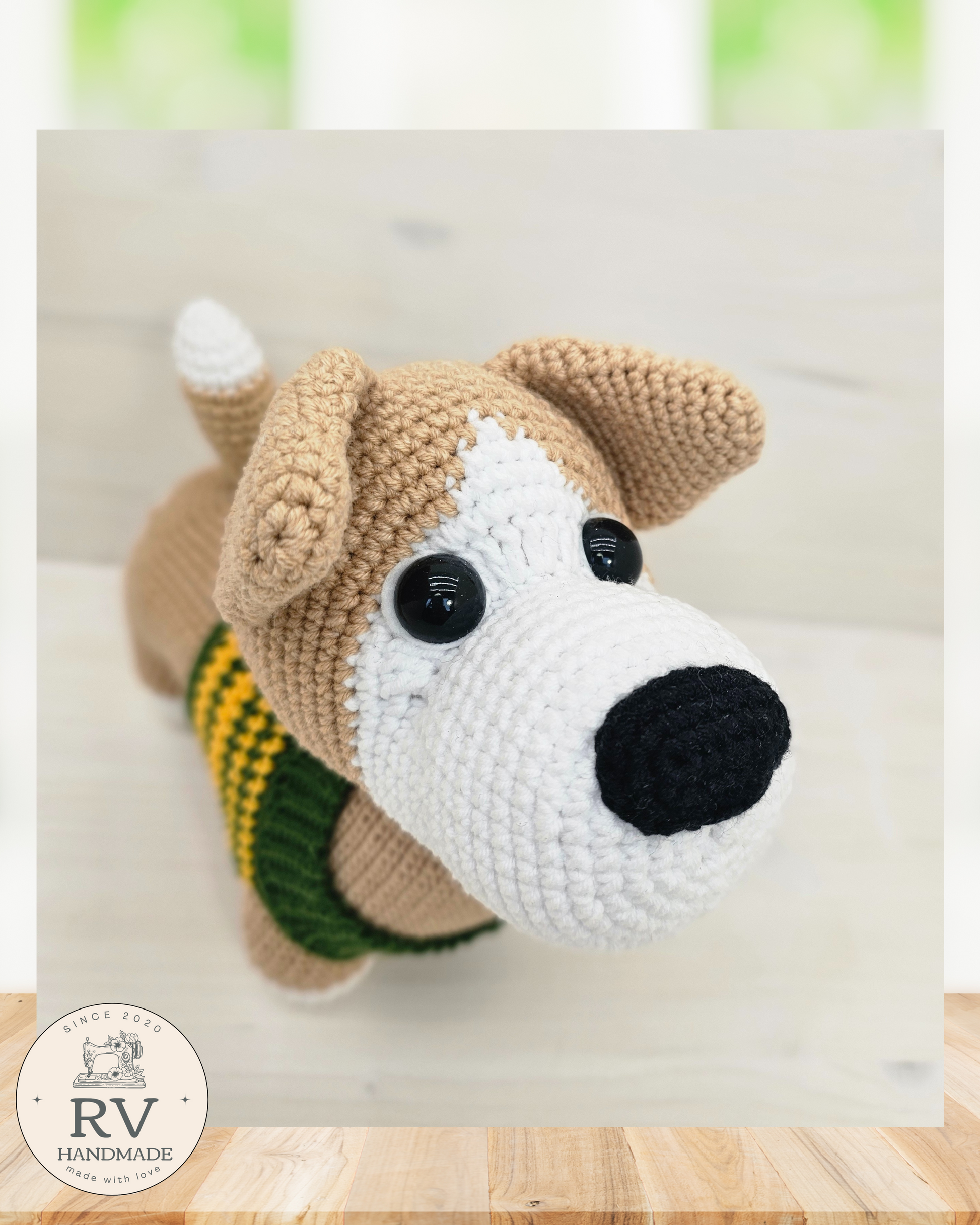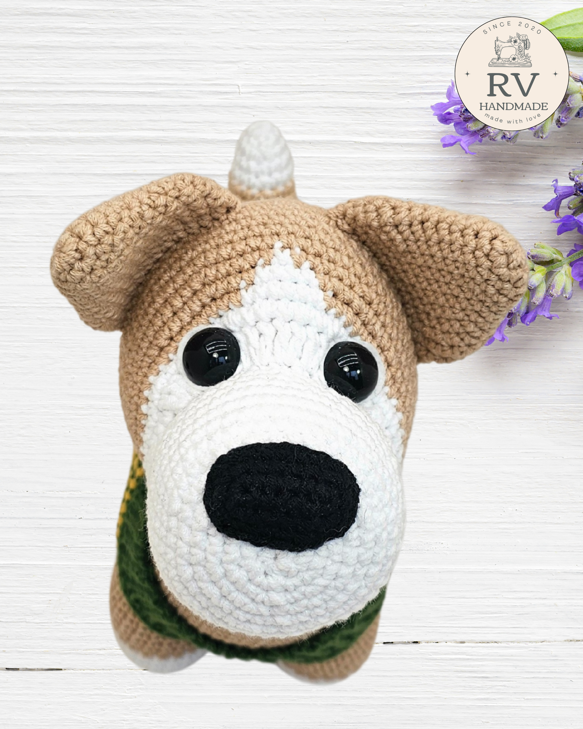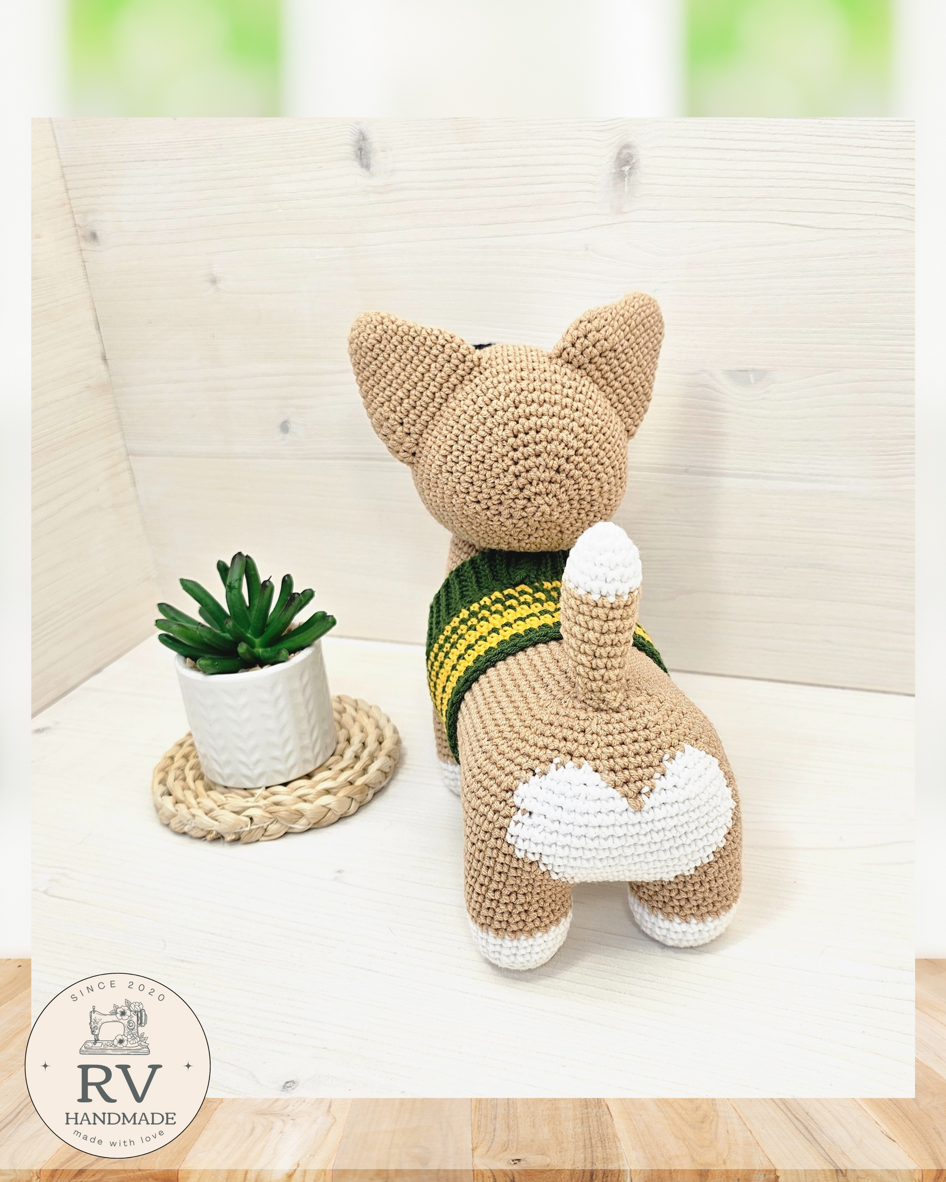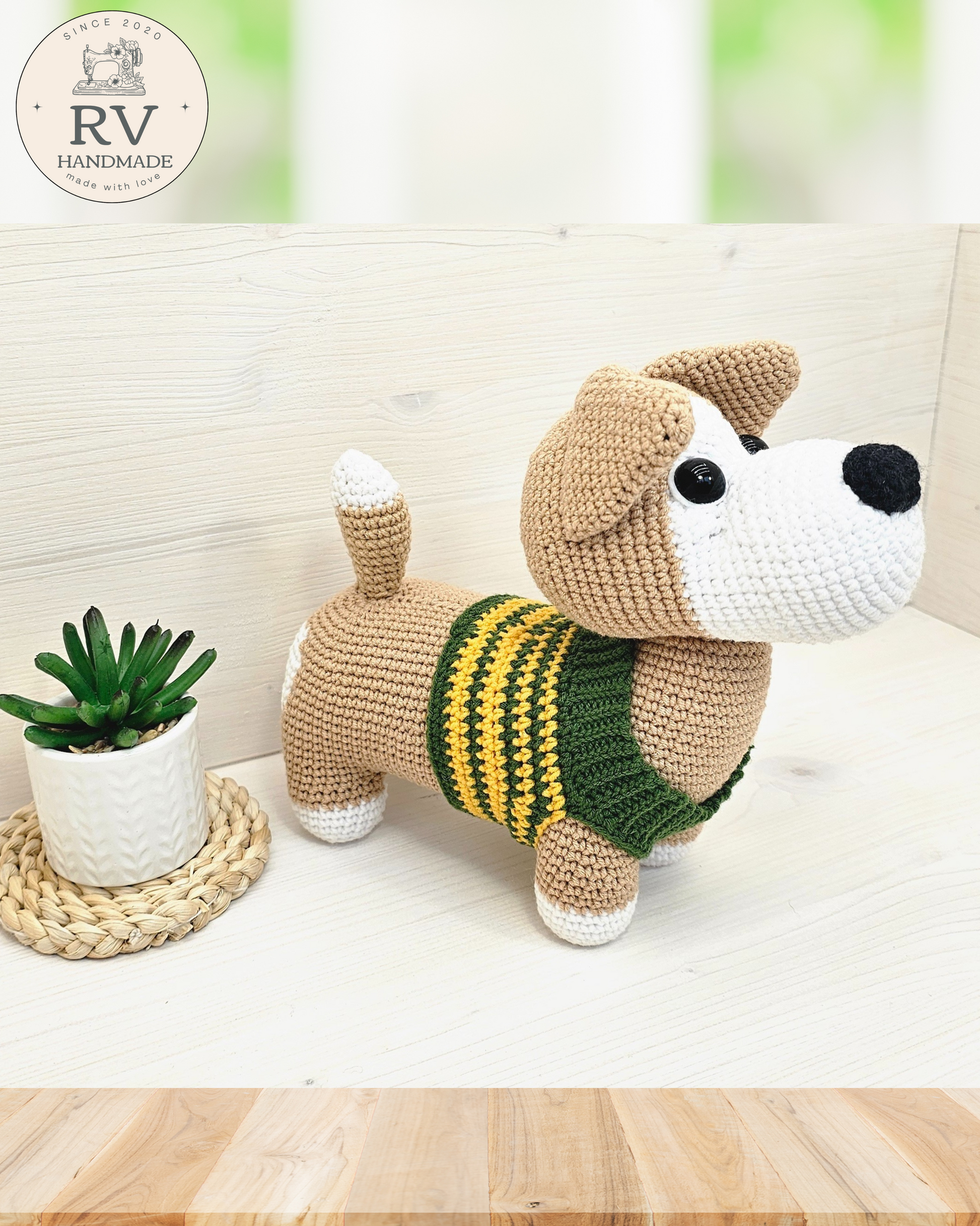 - Verpalai: Šuniukas nertas naudojant medvilnės ir polikrilo Yarn Art verpalus.